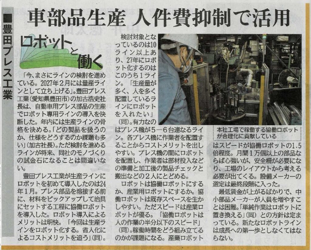 日刊工業新聞に掲載していただきました