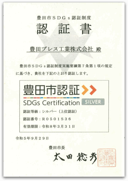 豊田プレス工業は、とよたSDGsパートナーとして登録し、
